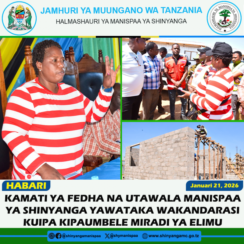 Kamati ya Fedha na Utawala Halmashauri ya Manispaa ya Shinyanga imewataka wakandarasi wanaotekeleza miradi ya maendeleo ndani ya Manispaa hiyo kuipa kipaumbele miradi ya elimu ili ikamilike kwa wakati na kuanza kutoa huduma bora kwa wanafunzi.