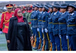 Rais wa Jamhuri ya Muungano wa Tanzania na Amiri Jeshi Mkuu Mhe. Samia Suluhu Hassan akikagua Gwaride la Heshima lililoandaliwa na Jeshi la Wananchi wa Tanzania (JWTZ) wakati wa Sherehe za Miaka 60 ya...